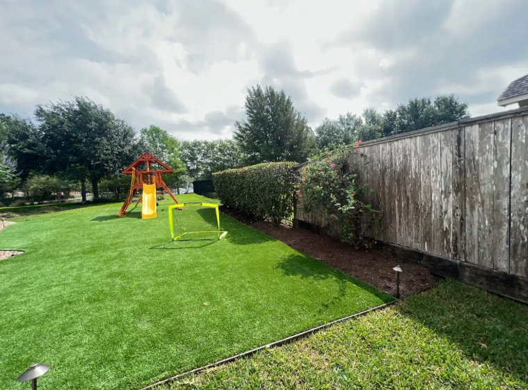 Proper turf installation includes soil medication and grading, helping to help water pooling and corrosion during Houston’s heavy rain events.